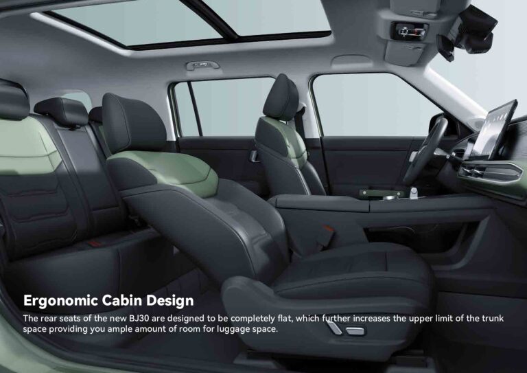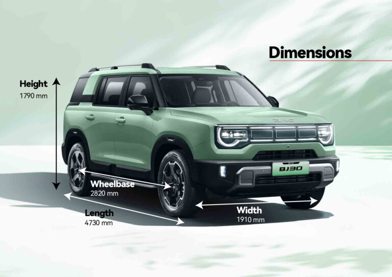 BJ30 adalah SUV 5 seater dengan panjang 4730 mm, lebar 1910 mm, wheelbase 2820 mm.